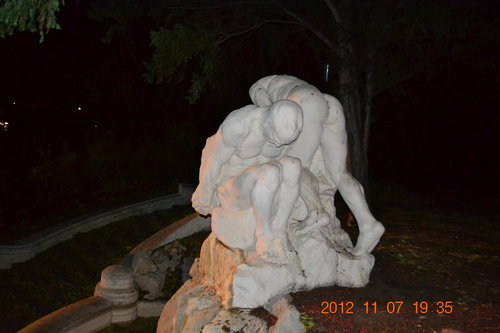 回飯店途中,經過一座公園,有看到作曲家約翰·巴普蒂斯特·史特勞斯雕像(Johann Baptist Strauss,1825-1899),還打上燈光,領隊特地停下來為我們介紹,頗具知名度的舞曲「藍色多瑙河」就是他寫的。因與其父同名,故通常稱為約翰·史特勞斯二世或小約翰·史特勞斯。