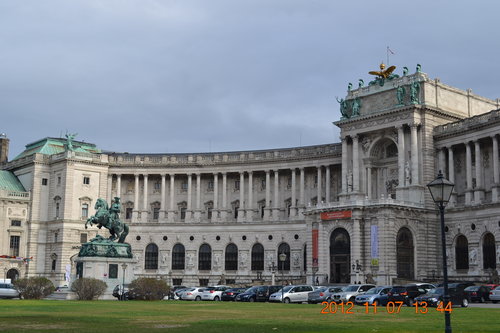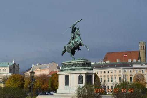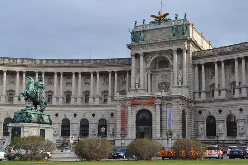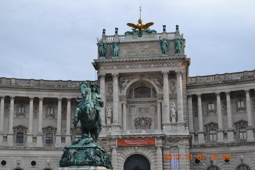 霍夫堡宮,也是法國王后瑪麗·安托瓦內特出生的地方,曾是昔日哈布斯堡王朝呼風喚雨的權力中心,前方的英雄廣場有個醒目的歐根親王雕像,在那裡展現躍馬英姿的,是曾經英勇擊退入侵的土耳其軍隊,他對建築十分有自己的品味,也因此讓霍夫堡宮呈現巴洛克式的華麗風采。