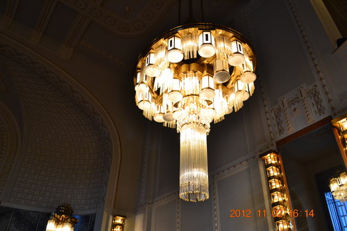 布拉格 導遊阿哲帶我們進餐廳吃下午茶,餐廳內內燈飾很美。