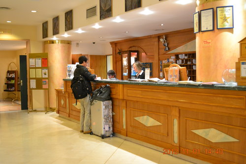 瑪麗安斯基 領隊阿哲飯店櫃檯辦理入住手續