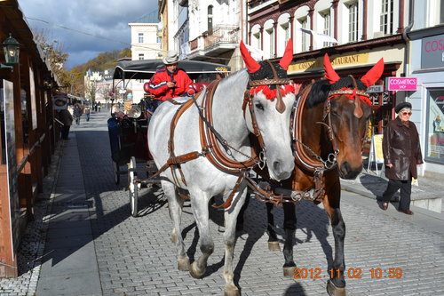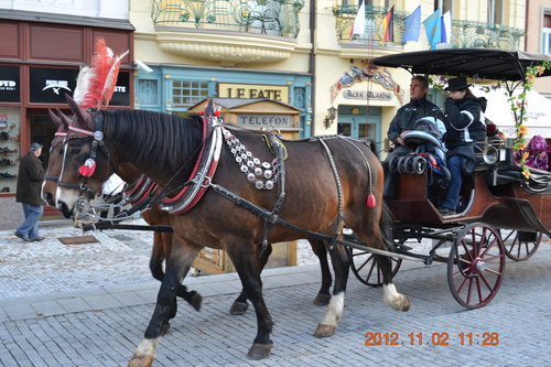 卡羅維瓦利 搭馬車逛街,馬匹也弄造型,很可愛。