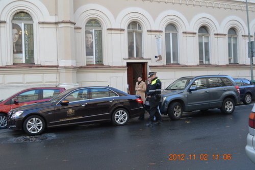 卡羅維瓦利 併排停車違規,警察來要開紅單了,車主看樣子低聲下氣。