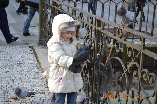 卡羅維瓦利 當地街頭小女生玩鴿子,很可愛。