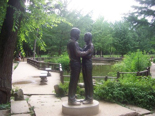 2009年8月4-7日在韓國觀光,有人說韓國的三寶是泡菜、人蔘和裴勇俊,來到韓國,當然要到冬季戀歌的拍攝地點─南怡島參觀,這是他們國家最流行韓劇拍攝地點。南怡島原先並不是島,而是因為修建水庫,淹沒部份陸地而形成一個島嶼,位於北漢江上游,首爾以東63公里處,面積46公頃,周長約5公里,形狀如一片樹葉飄浮於水 面。南怡島雖屬江原道,因位處京畿道交界,必須由京畿道加平渡口搭船,約5分鐘即可登島,由於遊客很多,船班往返不停,此島名稱緣自500年前朝鮮名將南怡將軍,南怡將軍就埋骨島上,這位將軍17歲中武狀元,後因屢次平定叛亂,27歲就當上兵曹判書,等於是現今國防部長職位,可謂功勳彪炳,少年得志,但是樹大招風,引起奸臣柳子光妒忌,假藉南怡將軍的一首詩:「白頭山石磨刀盡,豆滿江水飲馬無,男兒二十年未平國,後世誰稱大丈夫」,向國王告發南怡將軍有謀反之意,而南怡就這樣被處死了。