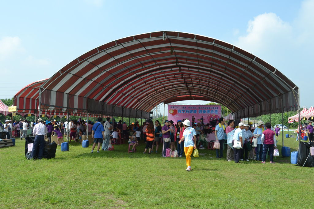健行終點搭棚子,有樂團,有歌者演唱歌曲,增加熱鬧氣氛。