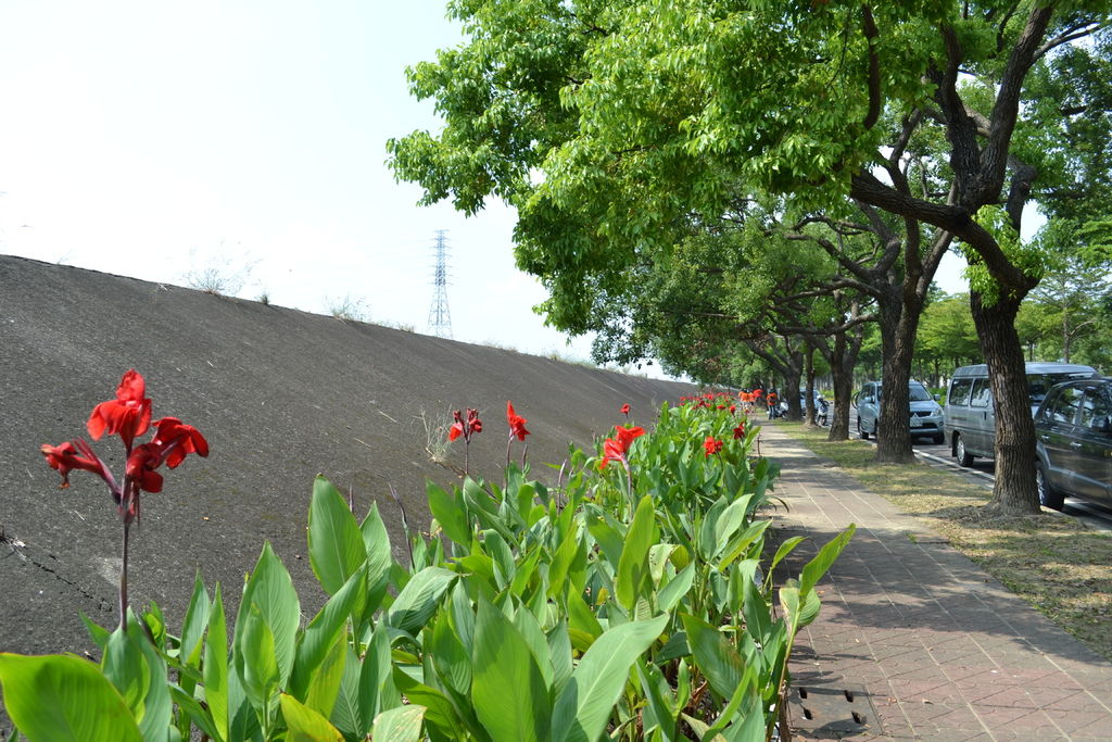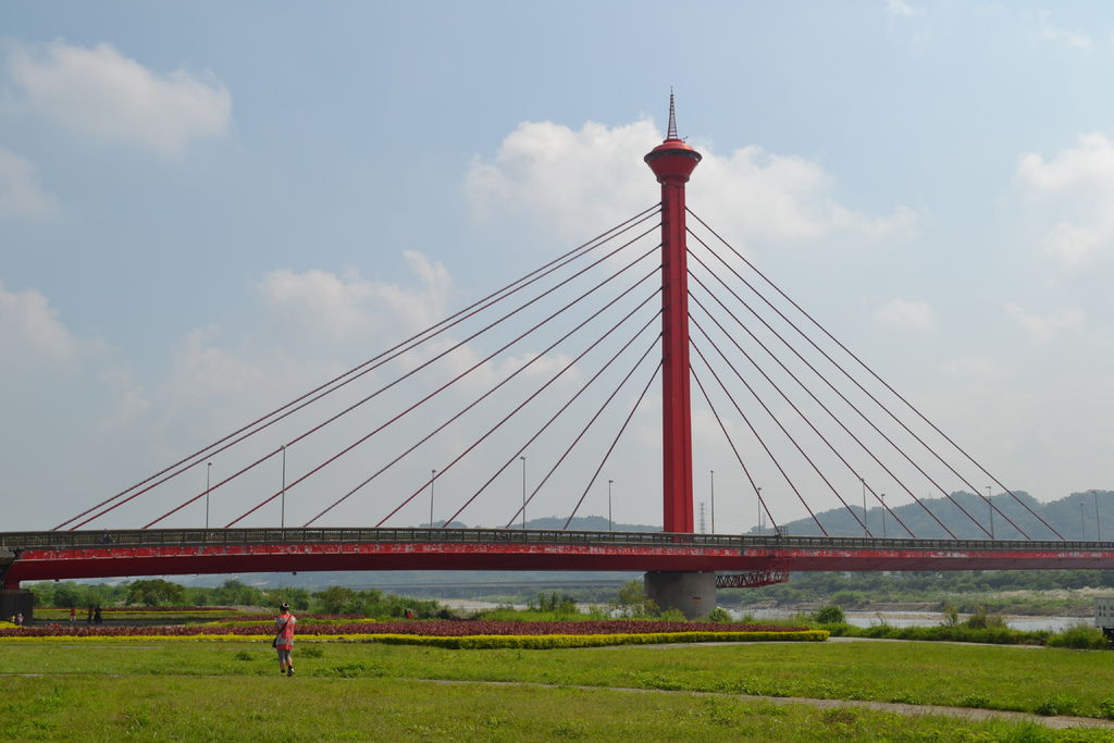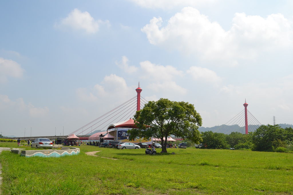 新東大橋橋下,規劃出單車道、綠油油的草皮,是苗栗縣民休閒活動的好去處,提供給許多人運動健身,每到假日更有許多人攜家帶眷一起來到這裡騎單車、放風箏、散步。