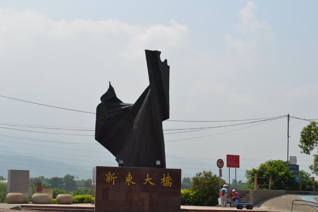 新東大橋之公共藝術作品「有容乃大」,設立於1997年,為台灣雕塑大師楊英風的創作,作品為鑄銅材質,楊英風為台灣當代知名雕塑家,出生於宜蘭,曾就讀於輔仁大學與臺灣大學美術系,早期作品富含人文主義風格,後期則以現代主義的抽象組合造型、不銹鋼材質和中國式的藝術思維聞名於世。楊英風在1967年受邀擔任花蓮榮民大理石工廠顧問期間,被花蓮太魯閣壯闊奇險的千巖萬壑深深地撼動,其觀察這山川不僅蘊容了自然氣勢,更象徵中國民族性格的生命韌度,於是創作出「山水系列」作品,「有容乃大」即是其中之一。