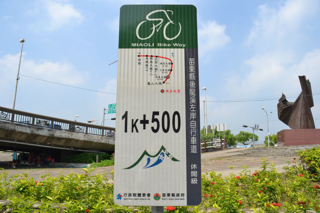 苗栗縣後龍溪左岸自行車道,由龜山大橋起算,到高鐵橋附近終點站。