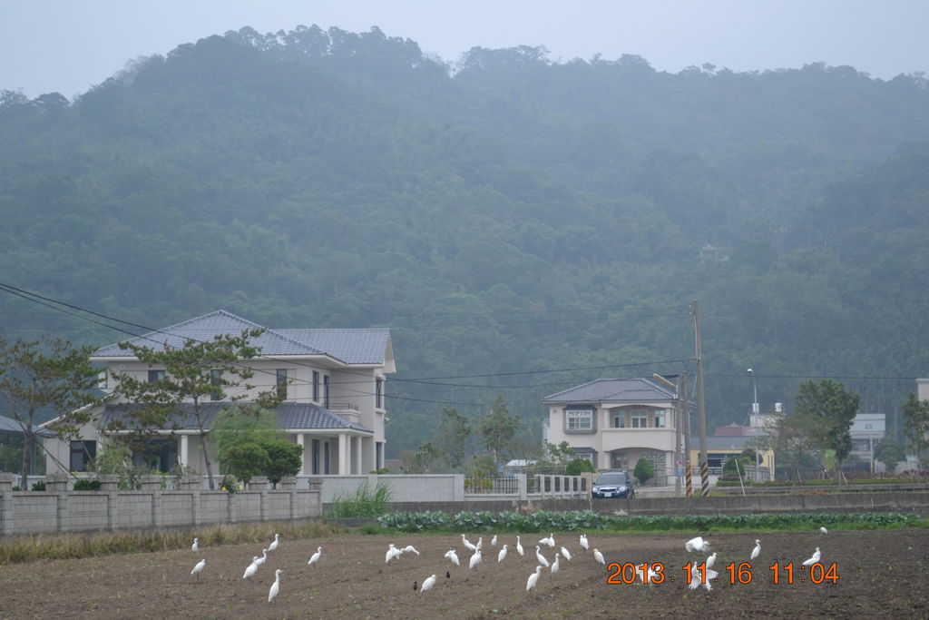 農地剛剛被耕耘機走過一趟,白鷺鷥紛紛來找小蟲吃。