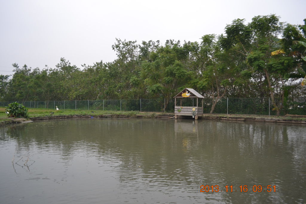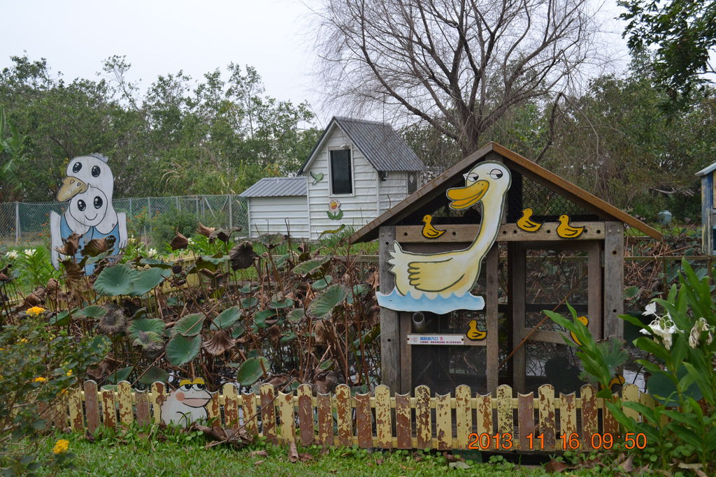 蓮花期已近結束,枝葉已經乾了。造型用母鴨帶小鴨。