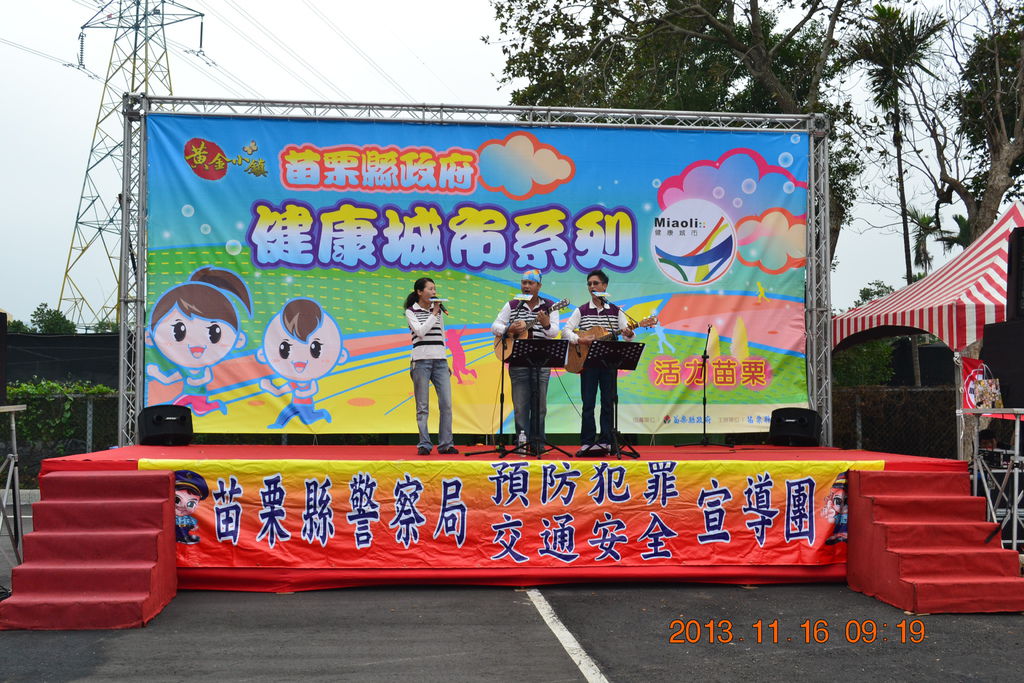 苗栗縣政府2013年11月16日上午在公館鄉苗栗特色館辦理健康城市系列,縣府員工及眷屬踴躍參加,活動結束,參加人員沿著特色館走一圈,時間約兩小時,太陽不會很大,走起來很輕鬆,不會有壓力。