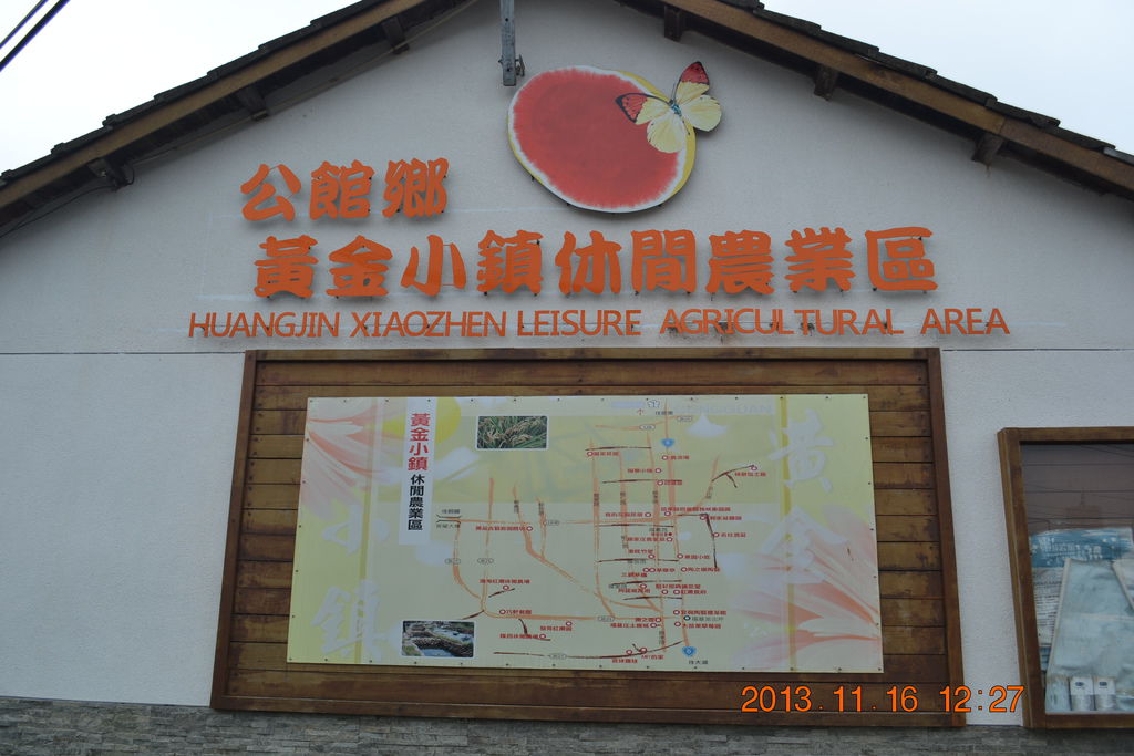 白上牆壁上寫上公館鄉黃金小鎮休閒農業區,底下還有詳細地圖可供外地人導引。