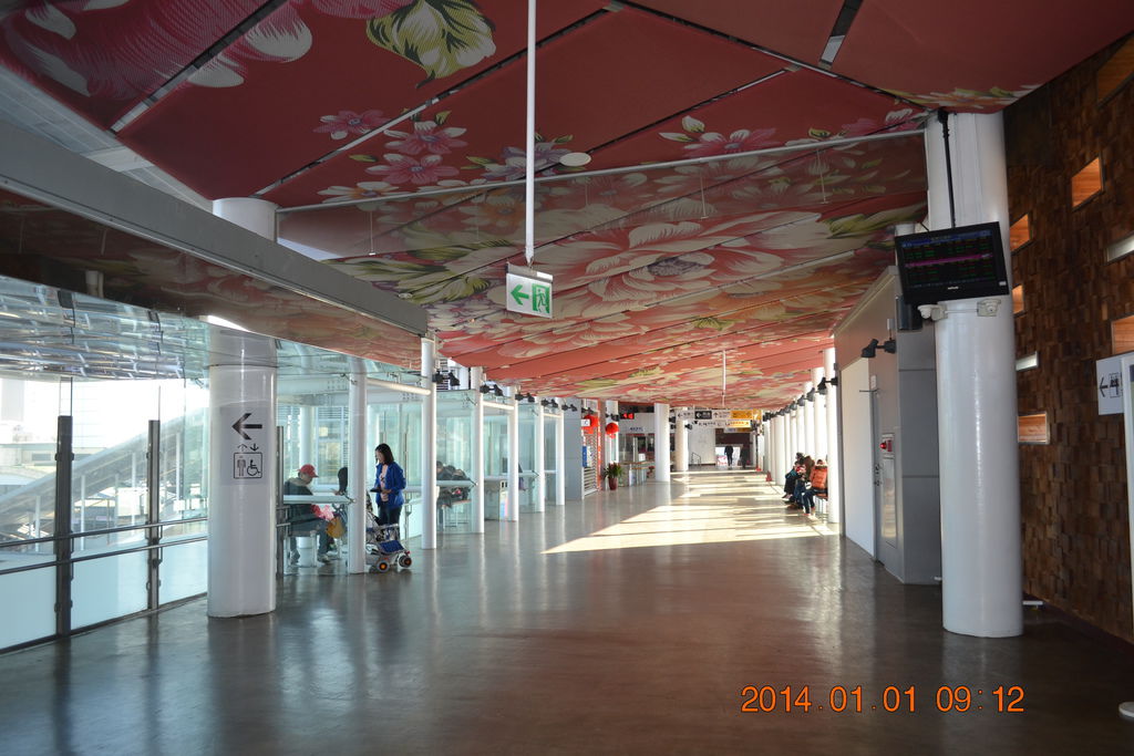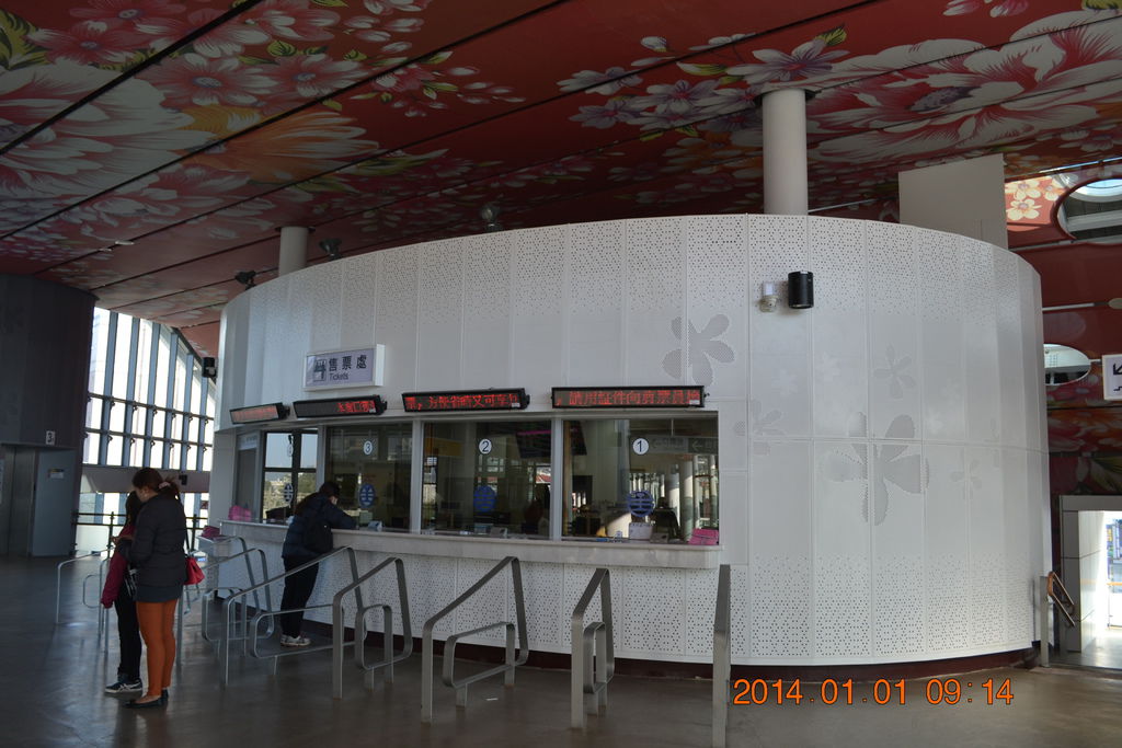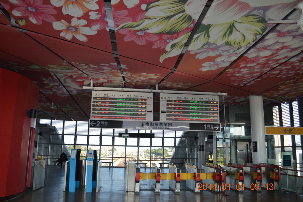 苗栗火車站新站房,外牆有油桐花,是客家庄的象徵。