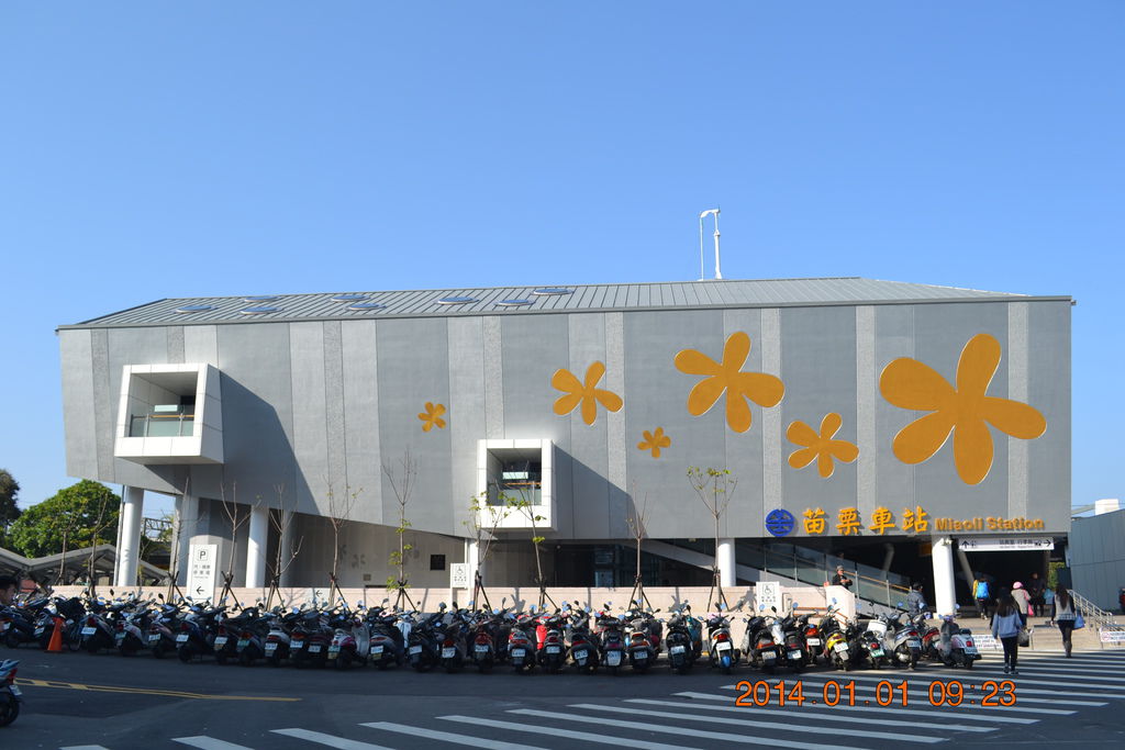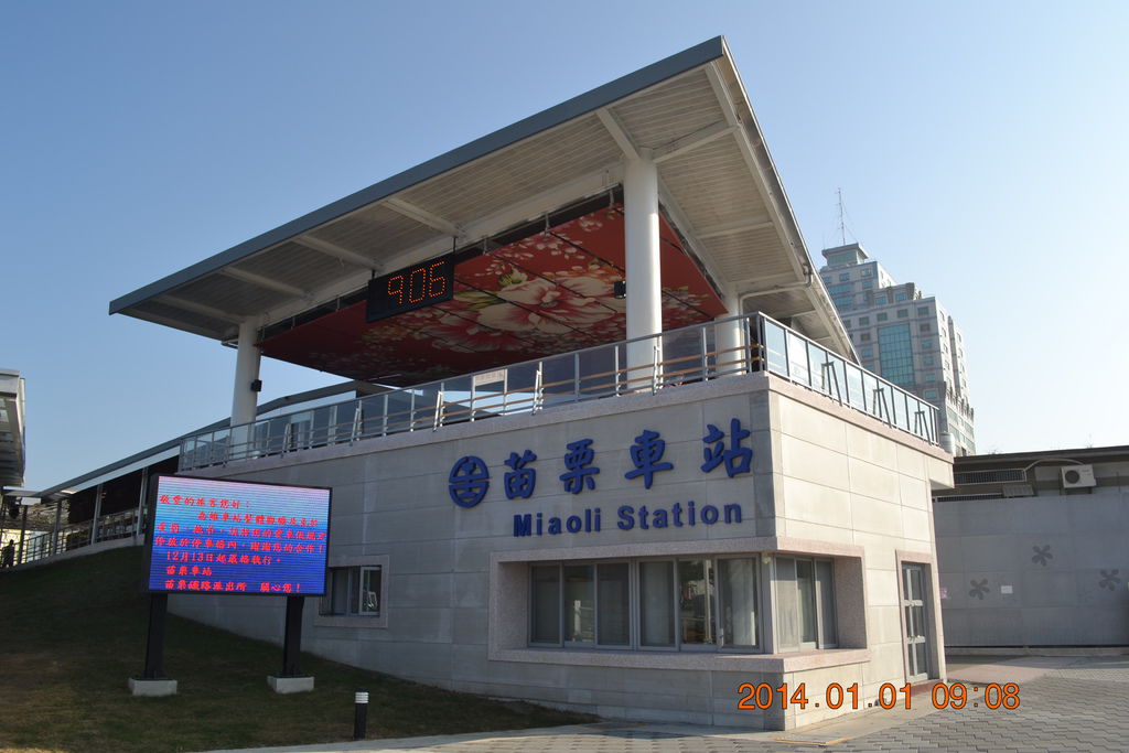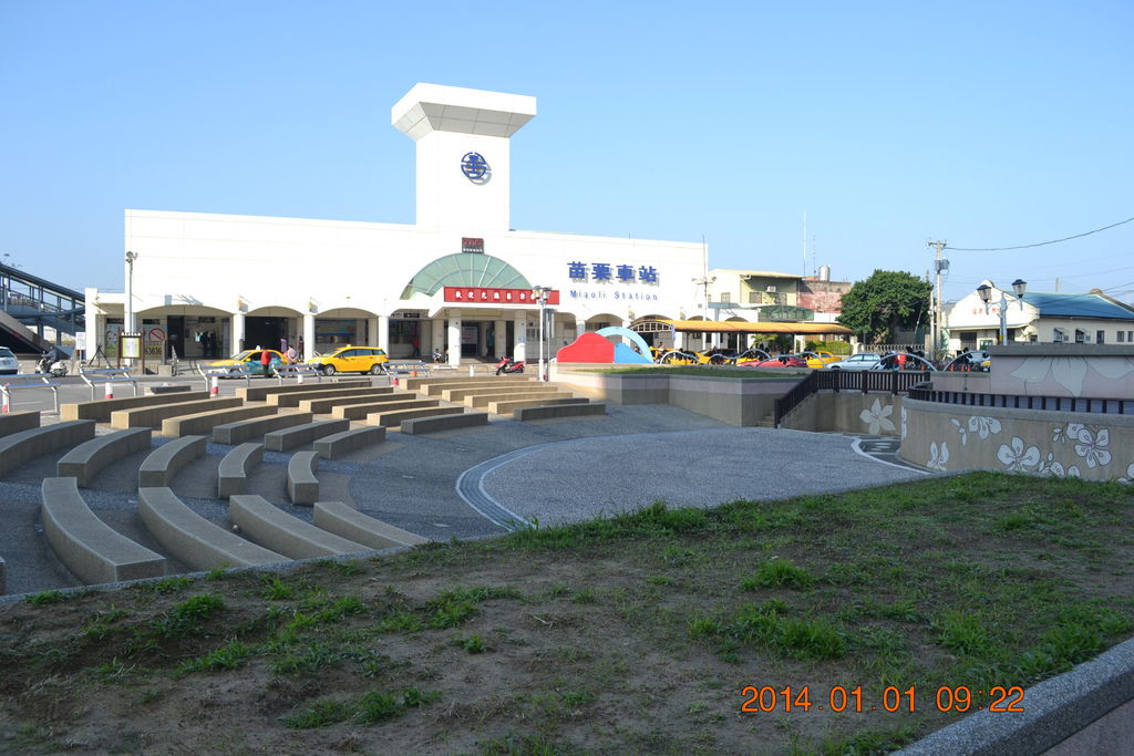 苗栗火車站,位於苗栗市為公路1號,成立於清光緒29年5月25日,當時站房均為木造,1932年,改修並修建天橋,翌年落成。1943年,因空襲被炸毀,1954年重修天橋。1971年,原站房拆除,在原地新建鋼筋混凝土站房,1973年4月完成。1978年整建二樓及站前門面,1997年整修為鋁合烤漆板門面。台鐵捷運化後續計畫,在原站房南側新建跨站式站房,完工後東西兩側均得上下車,2013年8月30日完工,工程款1億6千多萬元。