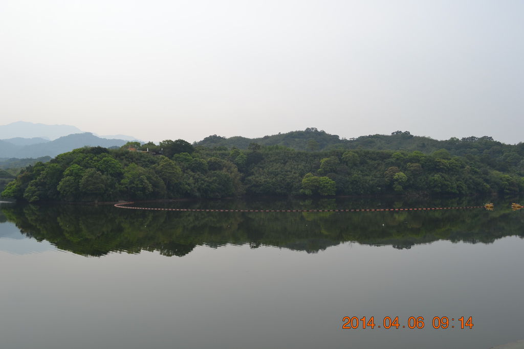 水庫群山環抱,湖水清澈,還有遊艇可以環湖,