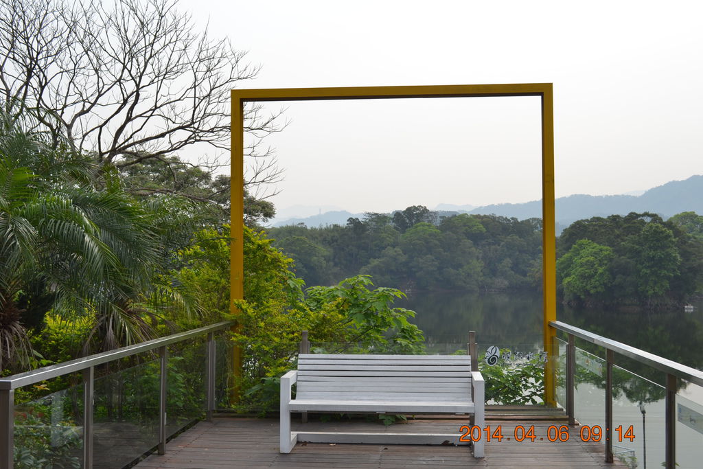 呈現湖泊、岸島、綠林以中國建築為主體,