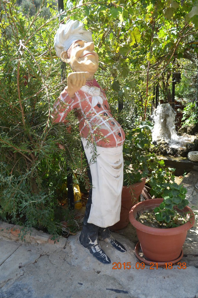 餐廳庭園有一廚師裝扮的雕像,