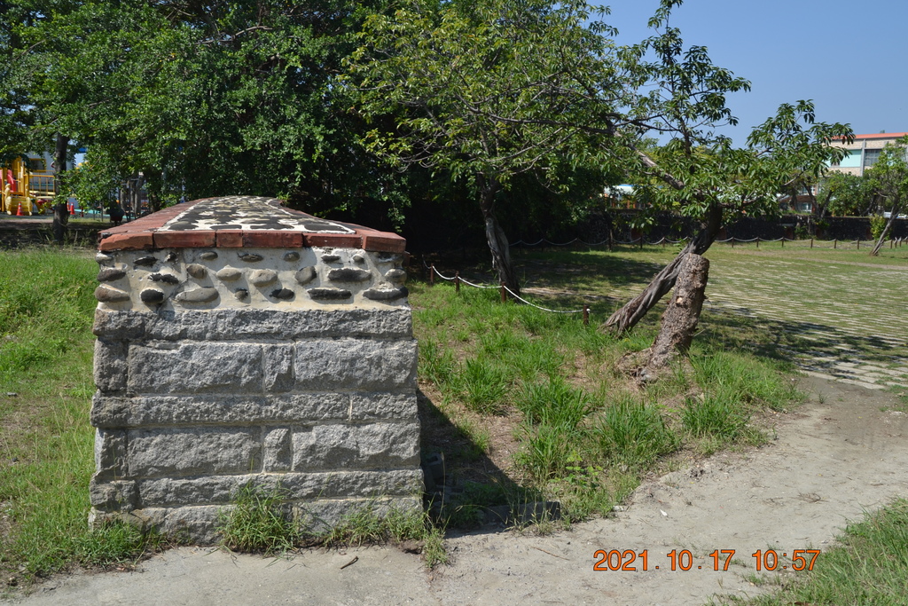 四草砲臺所剩部分便成了學校外牆。