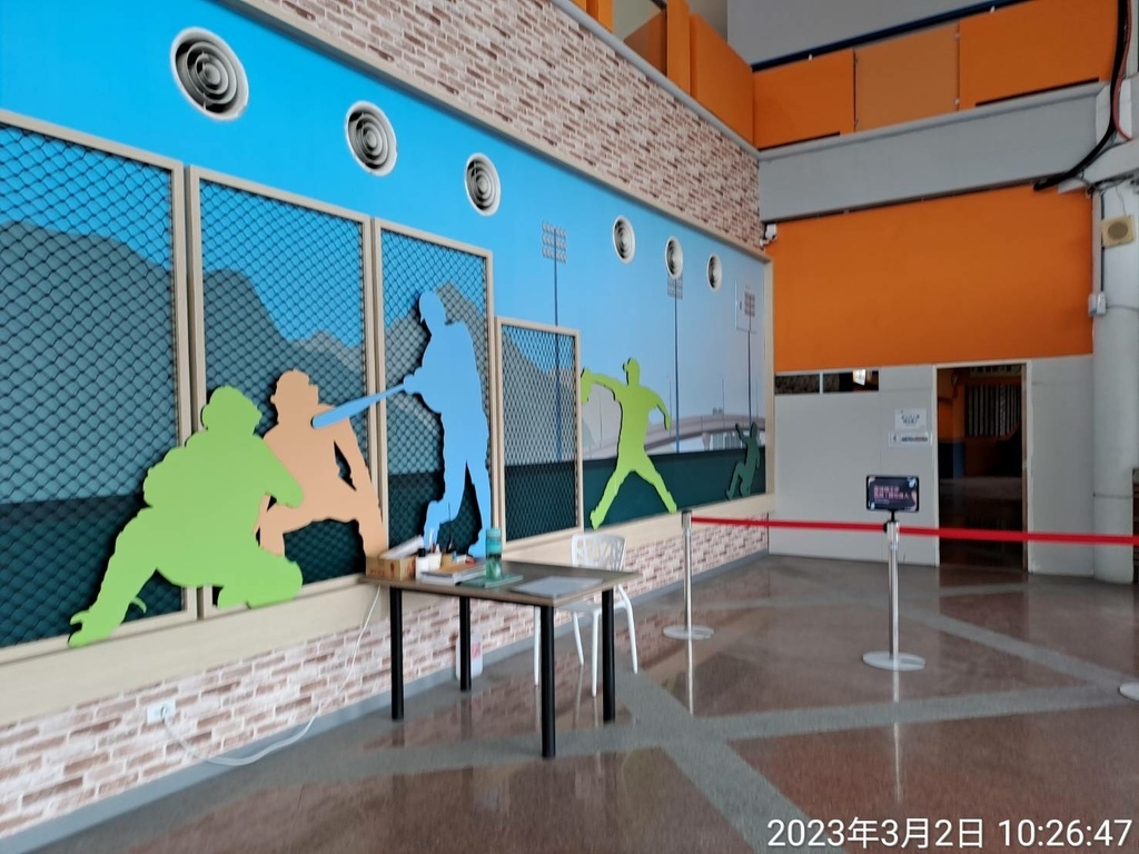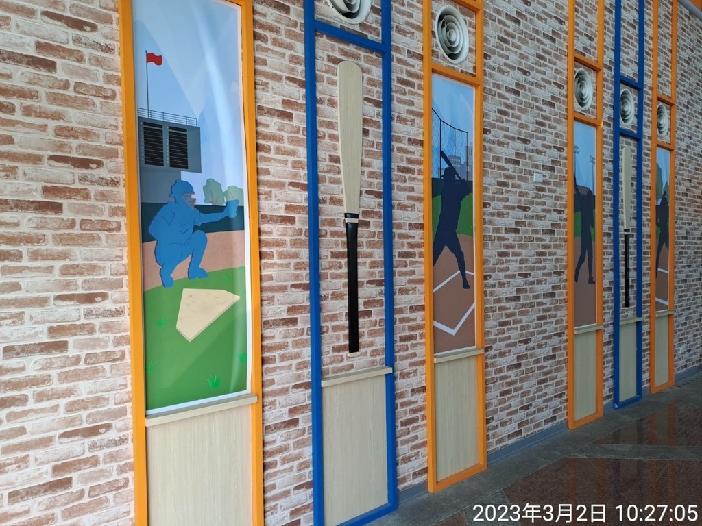 牆上有棒球彩繪浮雕。