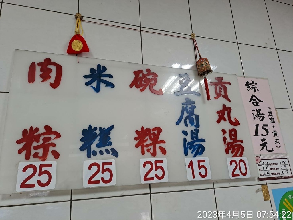 綜合湯15元、豆腐湯15元、貢丸湯20元、
