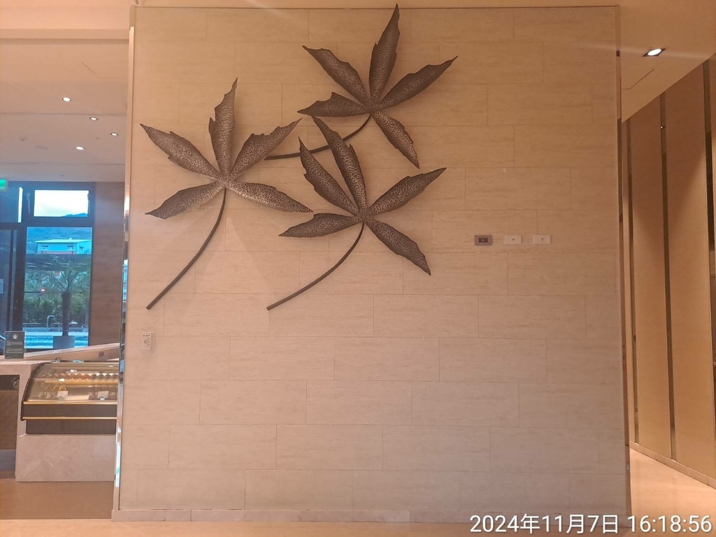 牆上有三支樹葉裝飾品。