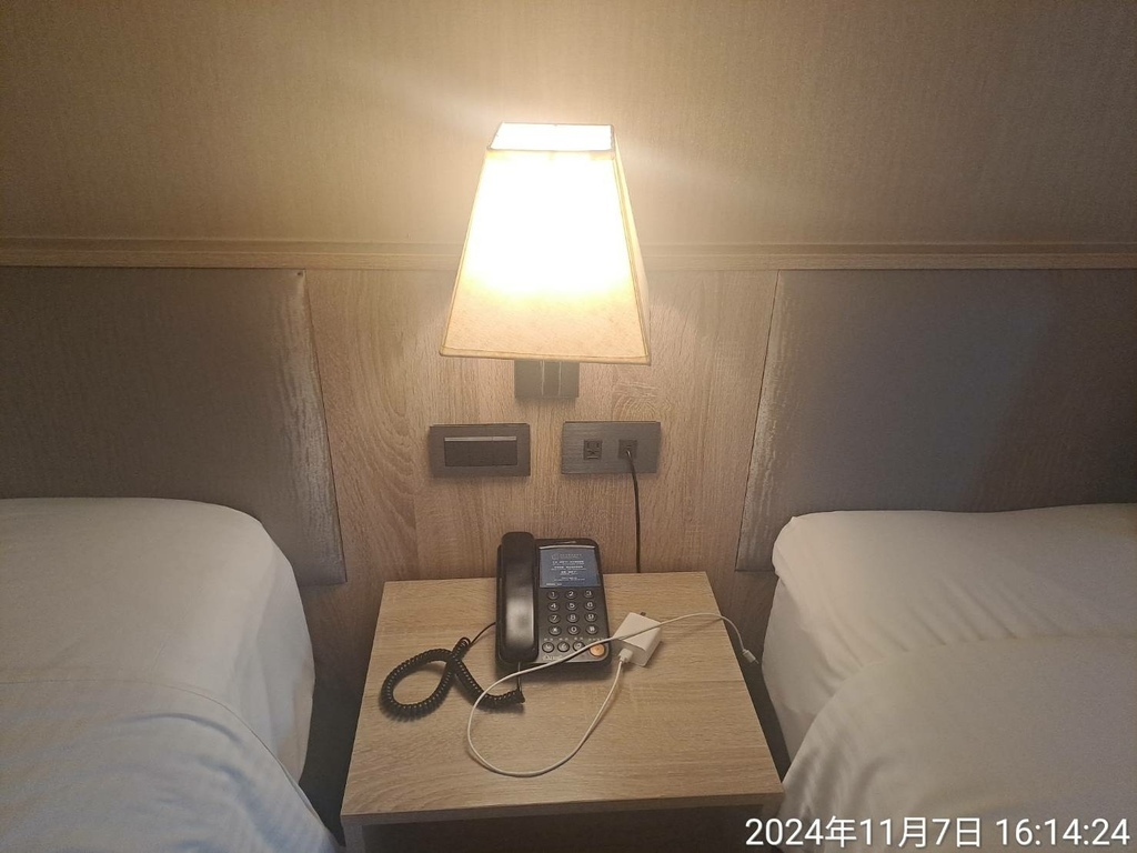 床頭一盞小燈及電話。