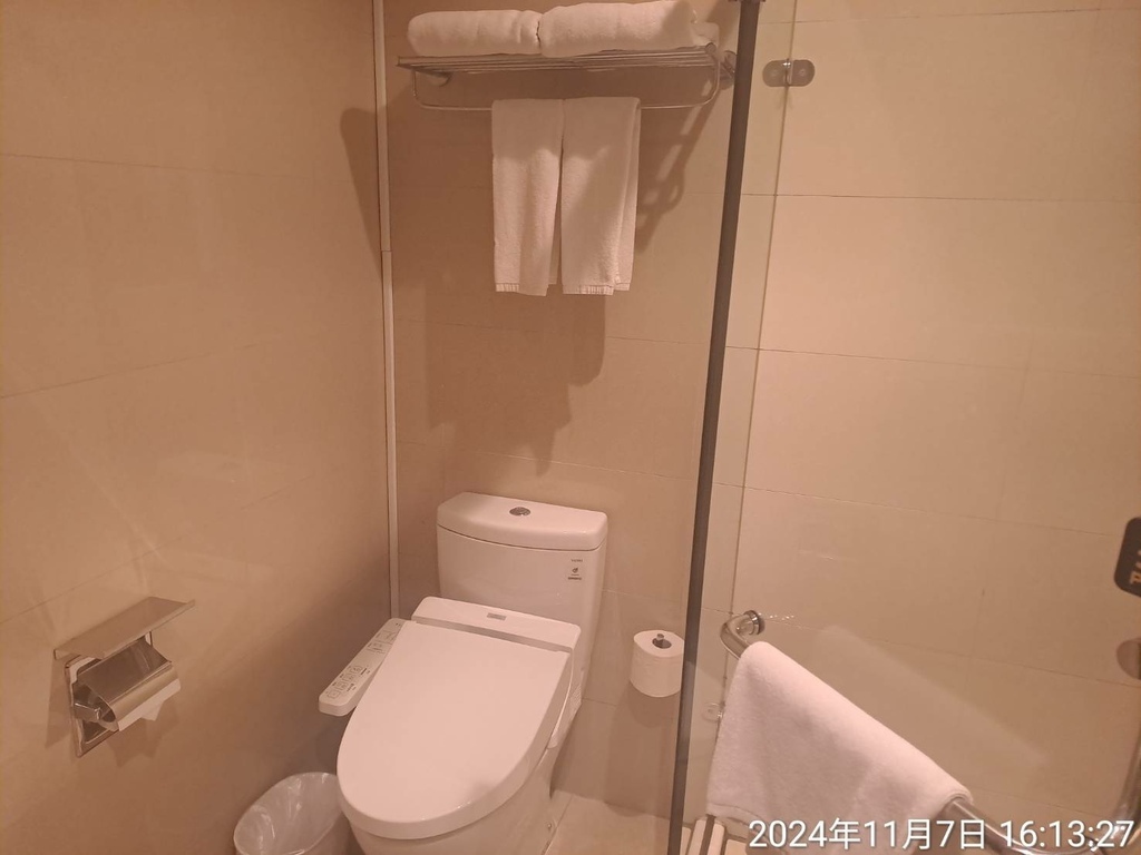 浴室內有毛巾、浴巾等,