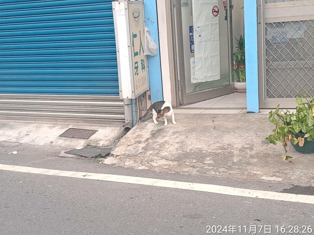 流浪貓沿路找吃的。