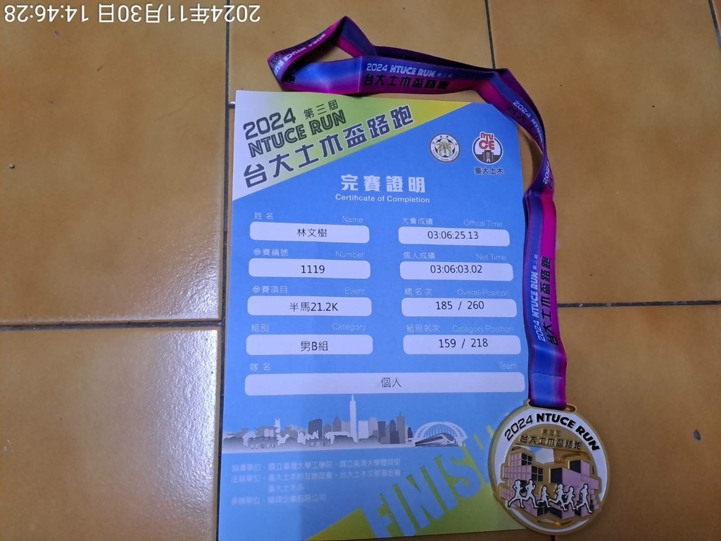 半馬21.2K完賽證明,
