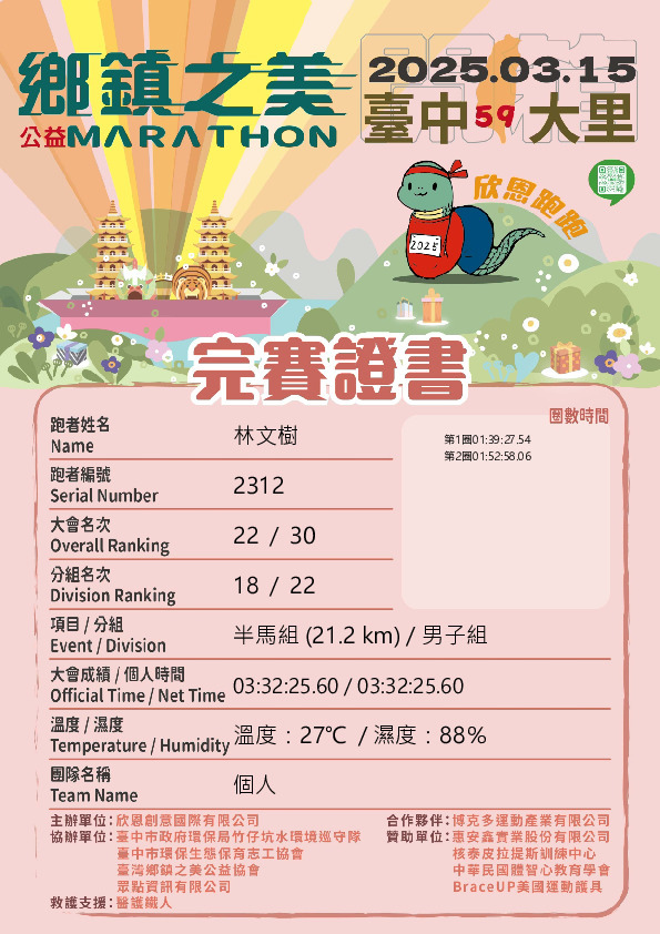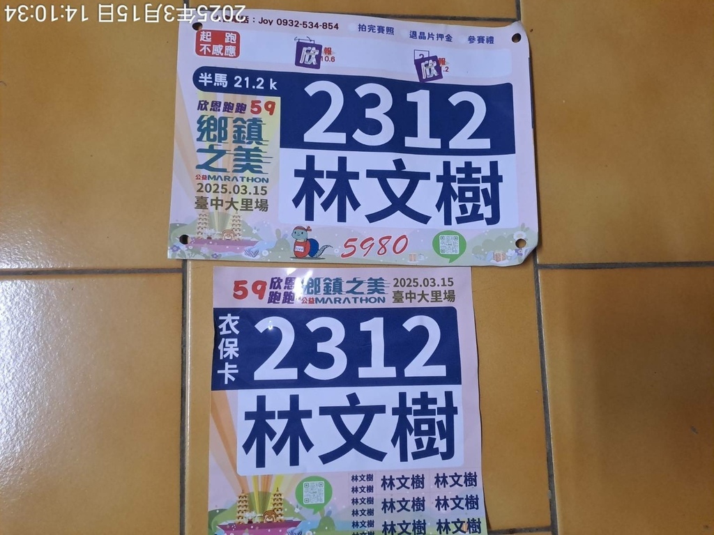 四、半馬組,21.2公里,2B,5.3K*2(來回)*2圈,06:00起跑,限時4小時。