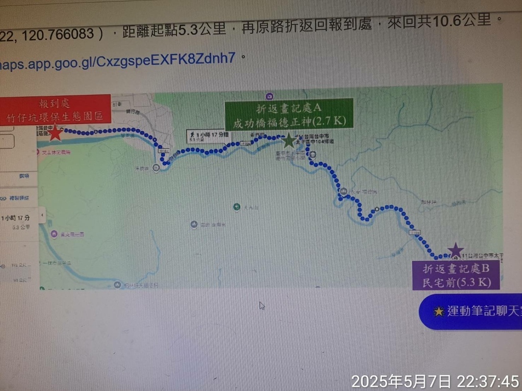 三、訓練組,31.8公里,3B,5.3K*2(來回)*3圈,06:00起跑,限時5.5小時。