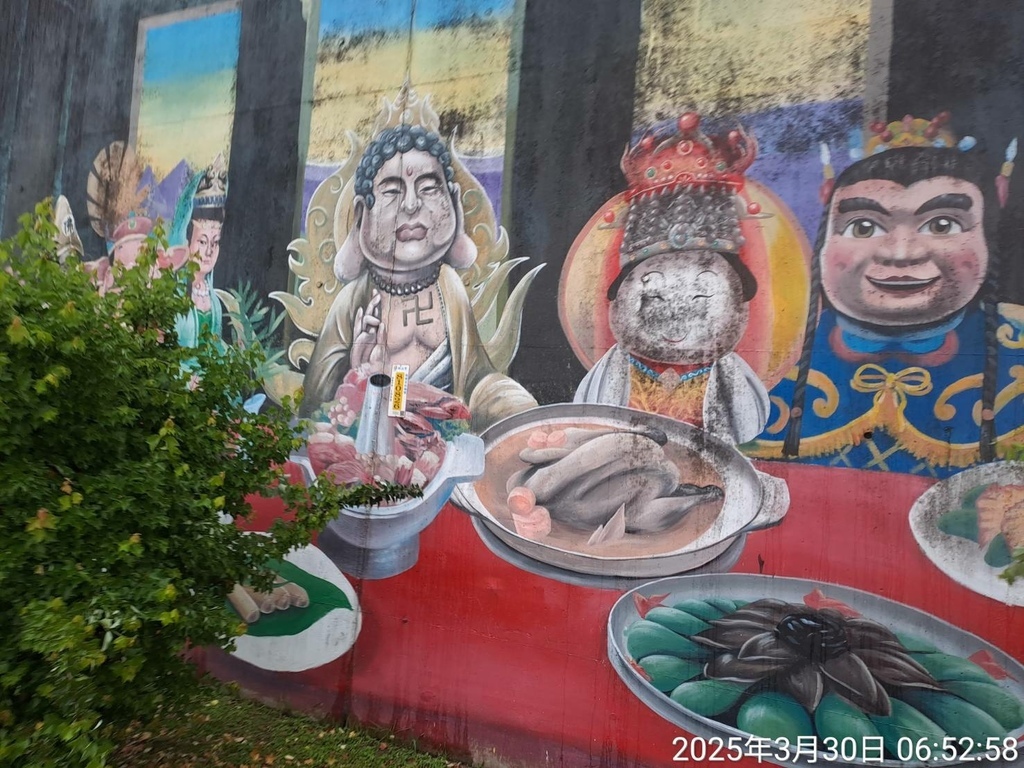 牆上有宗教幽默彩繪,