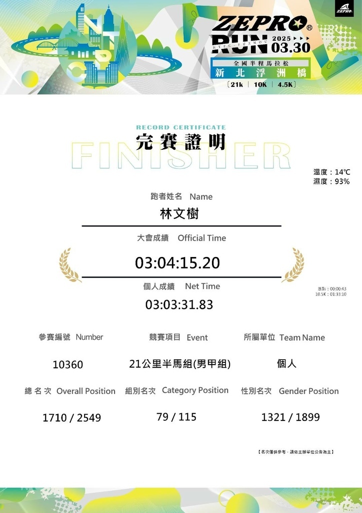 完賽證明拿到了,