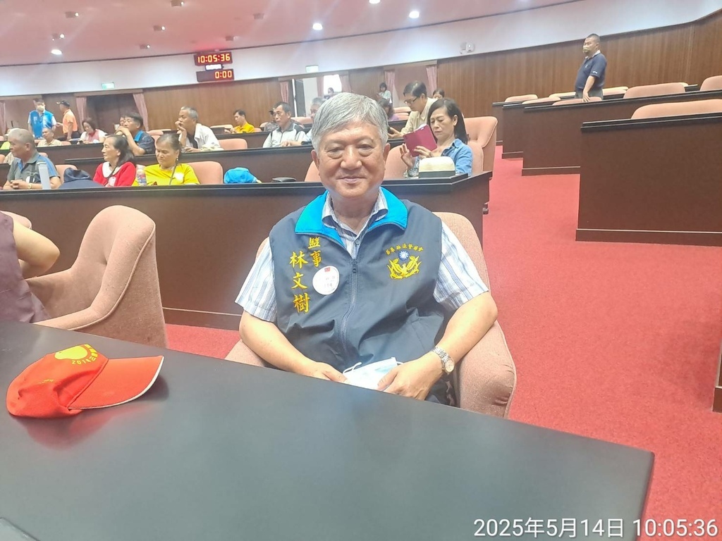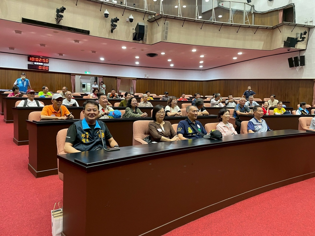 在議場內向大家問候。