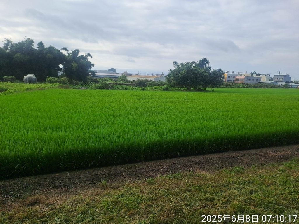 路旁稻田綠油油的,