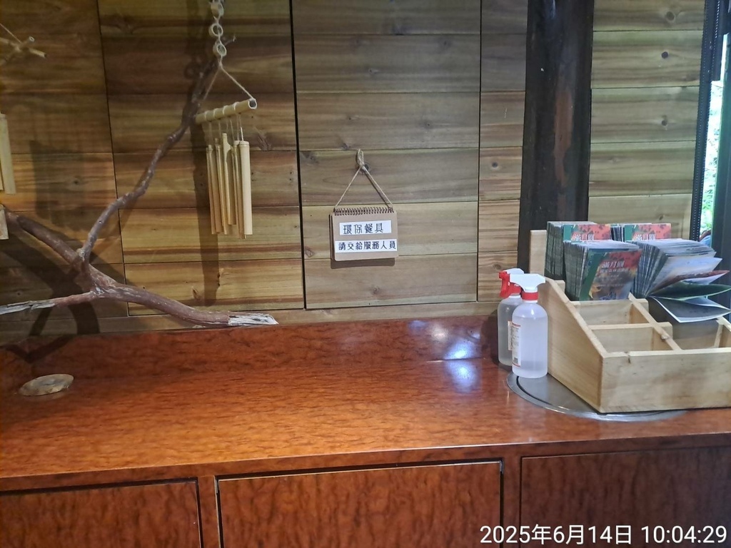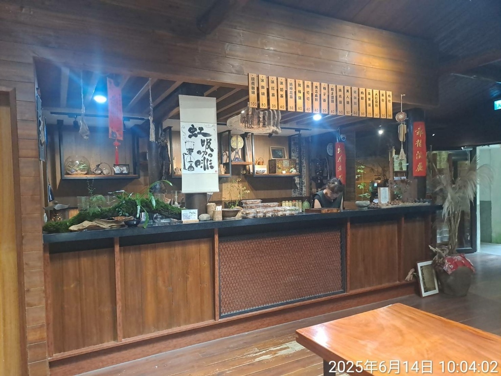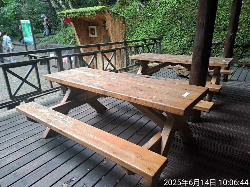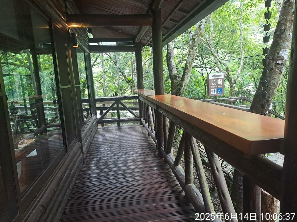 騎樓區有木製桌面,