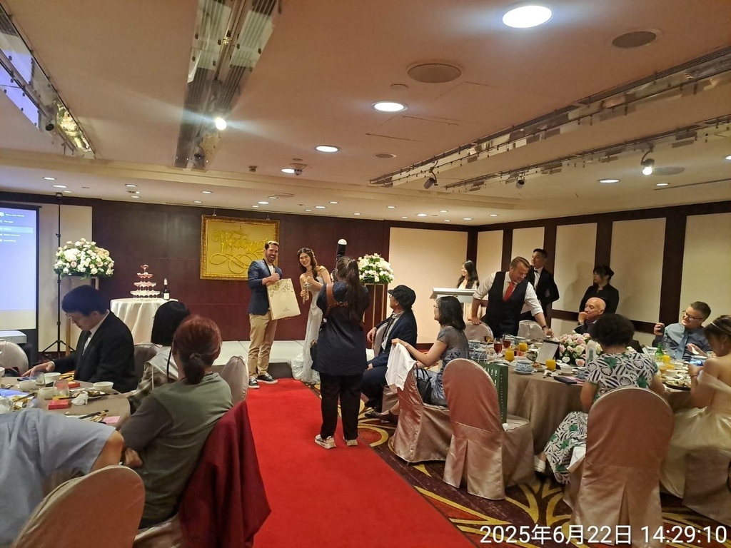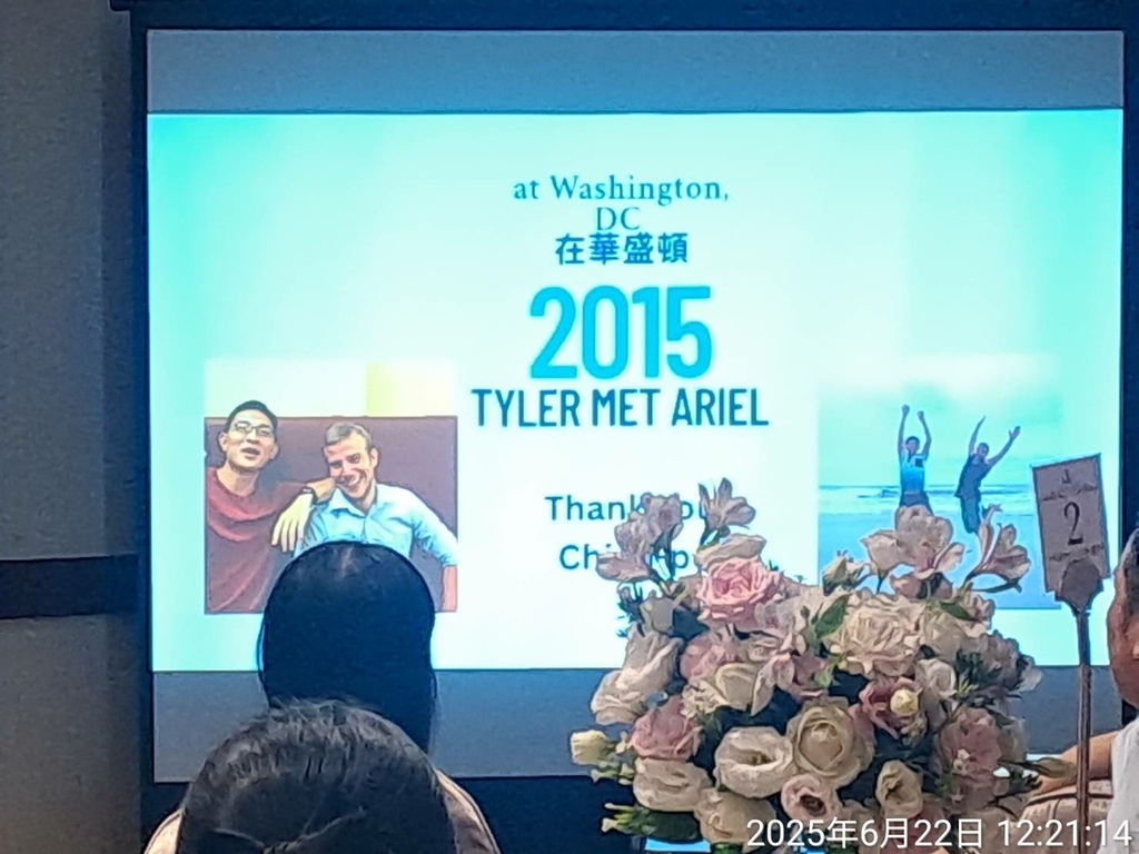 為參加外甥女Ariel及其夫婿Tyler婚宴餐會。